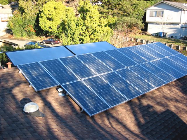 New solar electric system and batch solar water heater with Takagi on-demand water heater.